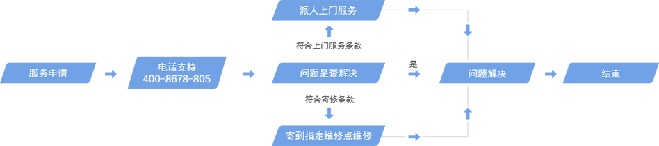 4. 在電話溝通未解決問題的情況下,視故障機情況安排工程師供上門服務或通知客戶寄到指定維修點進行維修;